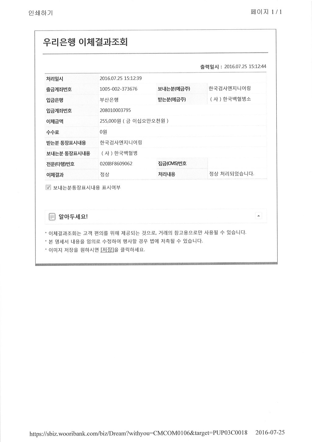 - 매월1일~31일 입금액 합산 다음달 백혈병지부에 전액 송금