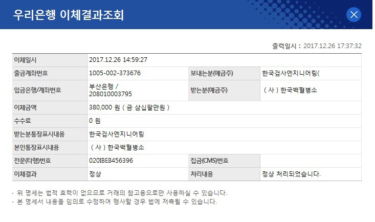 올해에도 KTE와 KWQE가 한달 한달 조금씩 지원한 금액의 합계가 2017년 총액 육백삼십만원(6,320,000)이며 지금까지 총 지원 누계는 오천이백이십만원(52,250,000) 입니다